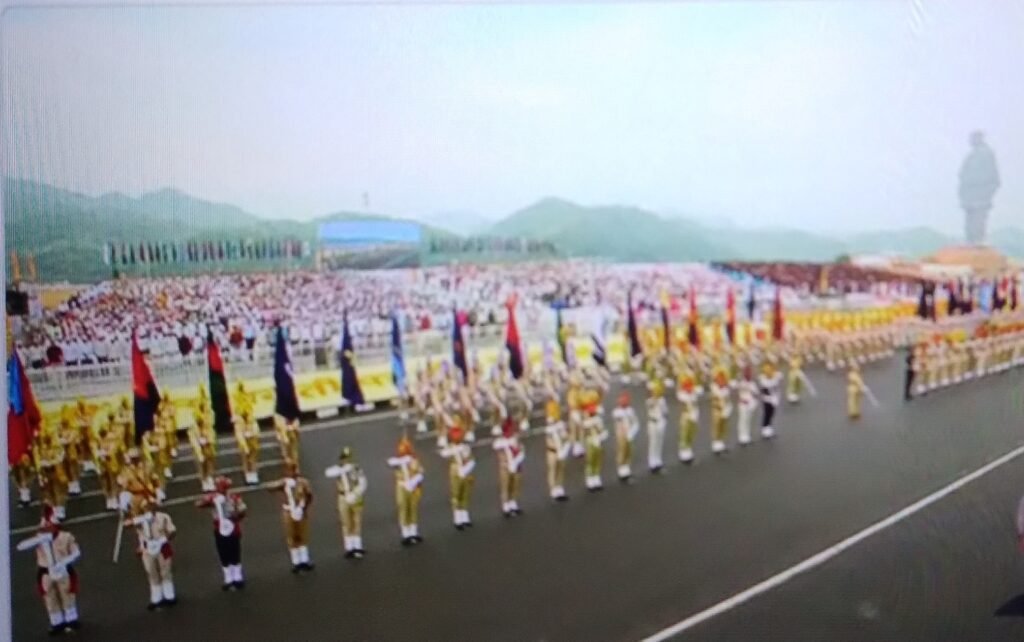 देश भर में आज 31 अक्टूबर को लौह पुरुष सरदार वल्लभभाई पटेल की 150वी जयंती मनाई जा रही है। देश के प्रधानमंत्री नरेंद्र मोदी जी ने आज गुजरात के केवडिया पहुंचकर सरदार वल्लभभाई पटेल की 150वीं जयंती पर उनहें श्रद्धांजलि अर्पित की। श्रद्धांजलि अर्पित करने के बाद प्रधानमंत्री नरेंद्र मोदी जी ने राष्ट्रीय एकता परेड की सलामी ली। राष्ट्रीय एकता परेड में बीएसएफ, सीआईएसएफ, आईटीबीपी, सीआरपीएफ, एसएसबी, सहित कुल 16 टुकड़ियां भाग ले रहीं हैं। जानकारी अनुसार एकता परेड में शामिल सभी टुकड़ियों का नेतृत्व महिला ऑफिसर कर रहीं हैं।