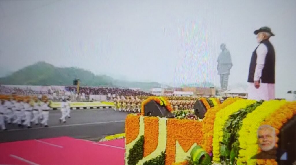 लौह पुरुष सरदार वल्लभभाई पटेल की 150 जयंती पर आज हो रहे एकता परेड में ऑपरेशन सिंदूर में बीएसएफ के 16 पदक विजेता और सीआरपीएफ के 05 शौर्य चक्र विजेता शामिल हो रहें हैं। आज गुजरात के केवडिया में गणतंत्र दिवस की तर्ज पर ही एकता परेड भी हो रही है। लौह पुरुष सरदार वल्लभभाई पटेल की 15वीं पर पूरा राष्ट्र आज उन्हें श्रद्धांजली अर्पित कर रहा है। इस अवसर पर प्रधानमंत्री नरेंद्र मीदी आज शुक्रवार गुजरात के नर्मदा जिले में एकता नगर के पास लौह पुरुष सरदार वल्लभभाई पटेल की 182मीटर ऊॅची प्रतिमा स्थल पर पहुंचकर लौह पुरुष को श्रद्धांजलि अर्पित की। प्राप्त जानकारी के अनुसार लौह पुरुष की 150वीं जयंती पर एकता नगर में 01 नवंबर से 15 नवंबर 2025 तक सटैचू ऑफ यूनिटी के परिसर में भारत पर्व 2025 का आयोजन किया जा रहा है। जानकारी के इस भारत पर्व के दौरान भारत की समृद्धि विरासत विविधता में एकता की भावना दर्शाने वाले विविध आयोजन भी होंगे। महामहिम राष्ट्रपति द्रौपदी मुर्मू जी ने दिल्ली में लौह पुरुष को अपनी श्रद्धांजलि अर्पित की। गृहमंत्री अमितशाह जी ने लौह पुरुष सरदार वल्लभभाई पटेल की 150वीं जयंती पर रन फॉर यूनिटी को हरी झंडी दिखाई। अमितशाह जी ने दिल्ली में लौह पुरुष को श्रद्धांजलि अर्पित की। इस अवसर पर प्रधानमंत्री नरेंद्र मोदी जी ने राष्ट्रीय एकता की शपथ दिलाई।