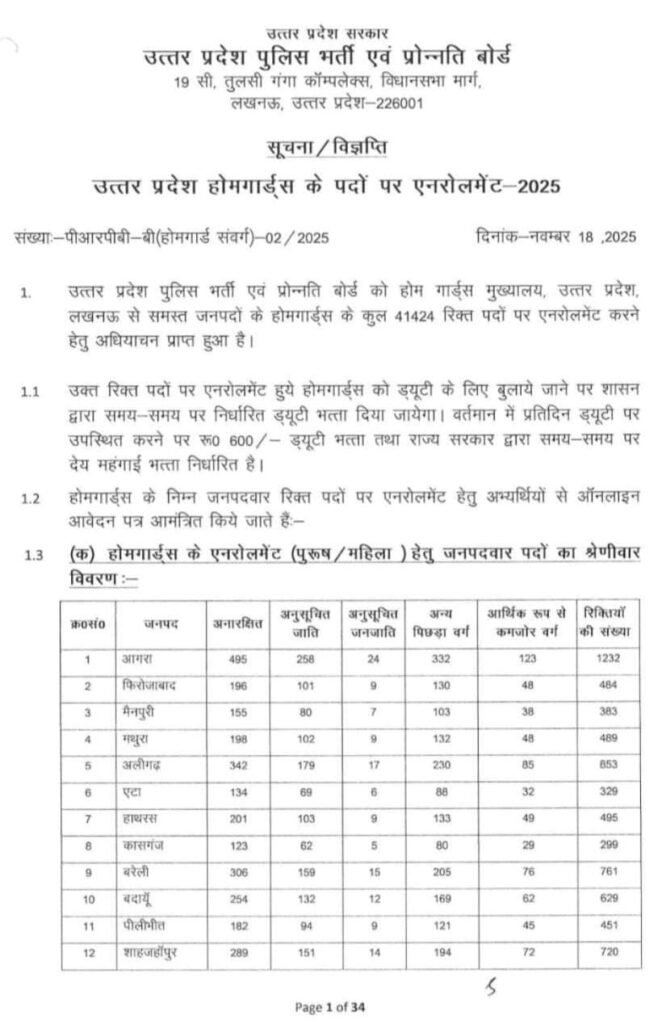 होमगार्ड के 41424 पदों का विज्ञापन जारी