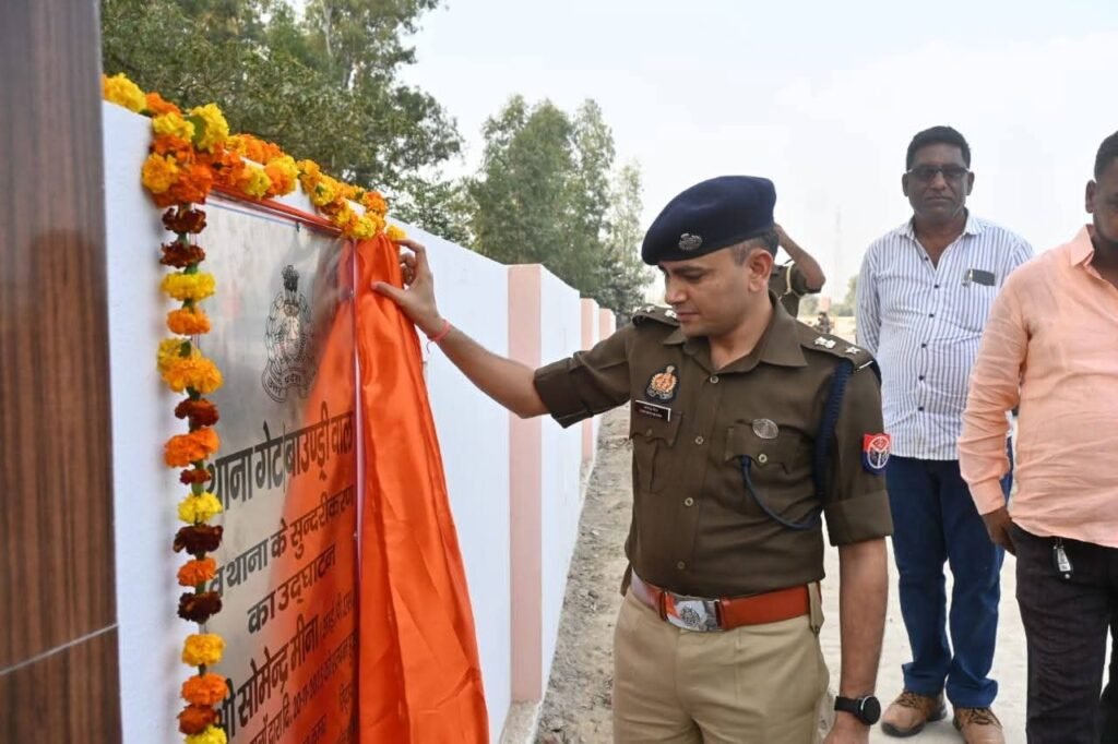 आज पुलिस अधीक्षक महराजगंज सोमेन्द्र मीणा ने पुरंदरपुर थाने पर नवनिर्मित बाउंड्री वाल प्रवेश द्वार एवं सुंदरीकरण कार्य का किया उद्घाटन।