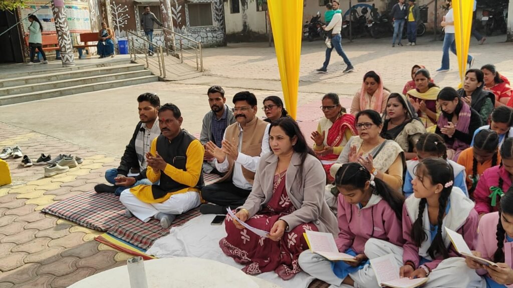 सागर/वंदे भारत लाइव टीवी न्यूज रिपोर्टर सुशील द्विवेदी 8225072664 * गीता जयंती के पावन अवसर पर, नगर पालिका परिषद मकरोनिया प्रांगण मे भगवत गीता के 15वें अध्याय का सामूहिक वाचन किया गया। यह विशेष आयोजन श्लोकों की गूँज ने पूरे स्थान को भक्तिमय बना दिया।