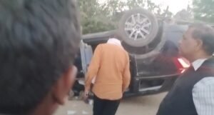 पाली रोहट तेज रफ्तार स्कॉर्पियो कार का टायर फटने से हाईवे पर पलटी