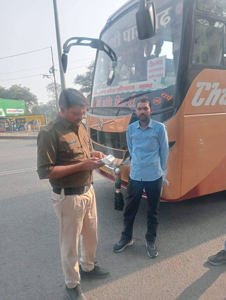 सागर/वंदे भारत लाइव टीवी न्यूज रिपोर्टर सुशील द्विवेदी 8225072664 * क्षेत्रीय परिवहन अधिकारी, मनोज कुमार तेहनगुरिया ने बताया कि कलेक्टर संदीप जी आर जिला सागर द्वारा यात्री बसों/स्कूल बसों एवं अवैध संचालित वाहनों की चैकिंग संबंधी कार्यवाही किये जाने के दिये गये निर्देश के अनुक्रम में क्षेत्रीय परिवहन अधिकारी, सागर द्वारा दिनांक 01/12/2025 को 15 वर्ष पुरानी यात्री बस क्रमांक MP15PA0977 का फिटनेस एवं पंजीयन निरस्त कर स्क्रेप करने का आदेश जारी किया गया। मध्यप्रदेश शासन, परिवहन विभाग, मंत्रालय के पत्र क्रमांक 3074/स/परि/आठ, भोपाल दिनांक 14 नवम्बर 2025 के आदेश के परिपालन में 15 वर्ष पूर्ण कर चुकी 151 ऐसी यात्री बसों को स्टैज कैरिज के स्थायी अनुज्ञापत्रों से रिप्लेस कराने हेतु नोटिस जारी किये गये है। जारी नोटिस में अनुज्ञापत्र धारकों को दिनांक 05.12.2025 तक का समय दिया गया है। उक्त अवधि के भीतर इन बसों को नवीन बसों से रिप्लेस करना आवश्यक है। अन्यथा स्टैज कैरिज के स्थायी अनुज्ञापत्रों को निरस्त किये जाने की कार्यवाही की जावेगी। बहेरिया तिराहा, बम्होरी तिराहा एवं दमोह मार्ग पर 50 यात्री एवं स्कूल वाहनों की जांच की गई। जांच के दौरान 16 वाहनों में फस्टएड बाॅक्स, रिफ्लेक्टर टेप, व्हीएलटीडी, अग्निशमन यंत्र, एचएसआरपी नम्बर प्लेट आदि कमियां पाये जाने पर उक्त वाहनों से मोटरयान अधिनियम की विभिन्न धाराओं के तहत् चालानी कार्यवाही करते हुए 39500/- का जुर्माना वसूल किया गया।
