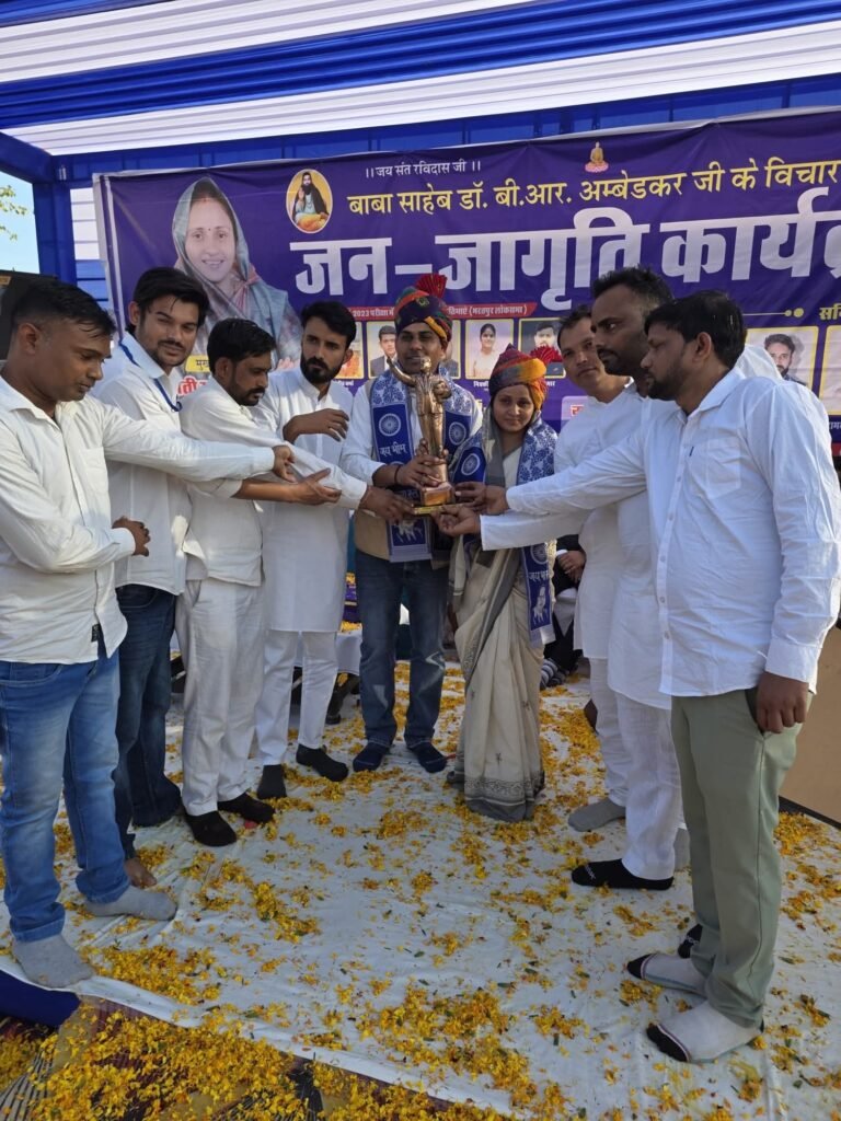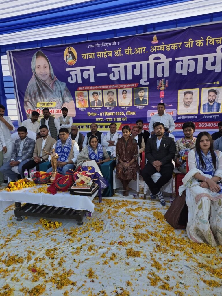 अलवर के कस्बा कठूमर में जन जागृति कार्यक्रम का आयोजन हुआ जिसकी मुख्य अतिथि सांसद संजना जाटव सर्व समाज को एकता के सूत्र में पिरोने एवम बसुदेवकुटुंब की भावना को लेकर जनता जनार्दन को संदेश देते हुए बताया कि सर्व जन साधारण के हितार्थ समर्पित संविधान को लागू किया गया था जिससे मानव मात्र के अधिकारों की रक्षा एवम तानाशाह शासन का अंत हो सके पंरतु आज संविधान के नियम कानून एवं मानवता की धज्जियां उड़ाई जा रही है निर्बल और कमजोर मनुष्य मात्र हो या फिर परिवार समुदाय उसका शोषण किया जा रहा है उसको भ्रष्टाचार एवम अपराध के तले रौंदा जा रहा है सच कहने वाला या बताने वाला अपराधी माना जा रहा है इसलिए सभी से अनुरोध है कि हम सभी जानते हैं कि एकता और अखंडता यदि सही दिशा और सही पथ की ओर हो तो तानाशाह भ्रष्टाचार और अपराध को झुकना और मिटना ही पड़ता है क्योंकि मानव मात्र को स्वतंत्रता एवम सुख शांति से जीने का अधिकार है और भी भारतीय संविधान के अनुसार विभिन्न अधिकार और नियम कानून है जो मानव मात्र के लिए है जिनसे अवगत होना प्राणिमात्र का कर्तव्य और जिम्मेदारी होने पर ही जीवन जीने के लिए बहुत ही परम आवश्यक है क्योंकिआज की कुटिल राजनीति एवम अत्याचारिक आचरण एवं तानाशाह के चक्रव्यूह से निकलने और मनुष्य जीवन का वास्तविक स्वरूप जानने के लिए बहुत ही गहन विश्लेषण और उच्च विचारधारा सबका साथ सबका विकास की सोच के साथ ही आने वाली पीढ़ी को सहज और भारतीय संस्कृति को सुरक्षित रखा जा सकता है