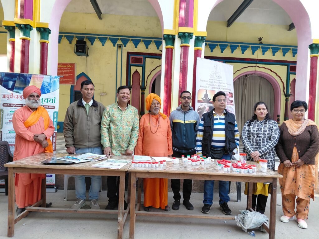 हरिद्वार: कमल दास कुटिया आश्रम मैं आज दीपकुंज आयुर्वेदा ने आयुष मंत्रालय के साथ मिलकर कमल दास कुटिया आश्रम में निशुल्क स्वास्थ्य शिविर लगाया जिसमें शुगर, बीपी, वेट और अन्य जांच जैसे रक्त संबंधी निशुल्क रूप से की गई। इसमें नेत्रों की जांच भी निशुल्क रूप से की गई और निशुल्क रूप से दवाइयो का वितरण भी किया गया ।और साथ ही आयुर्वेद की जानकारी भी दी गई और आयुर्वेद दवाई से होने वाले स्वास्थ्य संबंधी लाभ को विस्तृत रूप से समझाया गया ।तथा शरीर में किस बीमारी को लेकर क्या ध्यान रखना चाहिए उसके बारे में भी बताया गया। शिविर में पंचकर्म चिकित्सा की भी जानकारी दी गई और पंचकर्म चिकित्सा से भी उपचार किया गया।