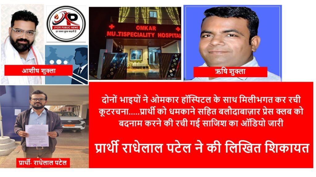 मामला ग्राम गिरौदपुरी, कसडोल निवासी राधेलाल पटेल से जुड़ा है, जिन्होंने ओमकार हॉस्पिटल पर इलाज के नाम पर मरीज को बंधक बनाए जाने और भारी उगाही का आरोप लगाते हुए पहले कैबिनेट मंत्री टंकराम वर्मा, कलेक्टर बलौदाबाज़ार एवं बलौदाबाज़ार प्रेस क्लब अध्यक्ष से लिखित शिकायत की थी। प्रशासनिक हस्तक्षेप के बाद मरीज को हॉस्पिटल से छुट्टी तो मिल गई, लेकिन इसके बाद पीड़ित को कथित रूप से धमकियों का सामना करना पड़ा।