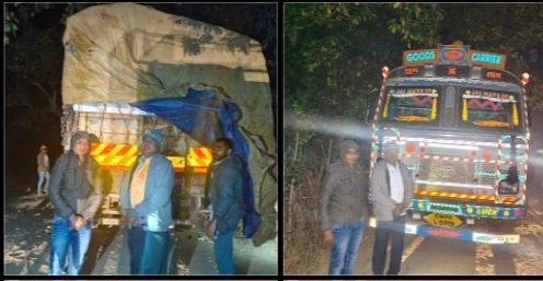 जानकारी मिली कि उडीसा रायघर से शोभा होते हुए राष्ट्रीय राज्य मार्ग 130 सी पर देवभोग क्षेत्र में अवैध धान भर बिक्री करने के लिए परिवहन कर रहा है। सूचना तस्दीक पर एसडीएम मरकाम रवाना हो कर घटना स्थल से अवैध धान भरा हुआ दो ट्रक क्रमषः ट्रक क्रमांक CG 04 J 8761 में 405 कट्टा शोभा एरिया से व ट्रक क्रमांक CG 04 J 3919 में 405 कट्टा धान कुल 810 कट्टा एक लाख चौवालीस हजार रूपए का अवैध धान बिक्री हेतु परिवहन करते मदांगमुड़ा ध्रुवागुड़ी के समीप पाया गया।