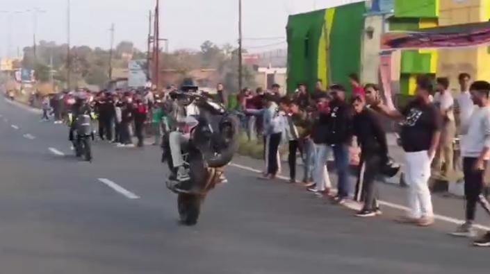 पुलिस भी इस मामले में अनजान दिखाई दी. यह घटना बीते रविवार की है, लेकिन सोशल मीडिया पर वीडियो वायरल होने के बाद मामले ने तूल पकड़ लिया है. हैरानी की बात यह रही कि इस दौरान न तो पुलिस मौके पर पहुंची और न ही यातायात पुलिस की ओर से किसी प्रकार की रोक-टोक दिखाई दी. प्रत्यक्षदर्शियों की मानें, तो दर्जनों युवक तेज रफ्तार बाइकों पर व्हीलिंग, जिगजैग राइडिंग, ओवरटेकिंग और रेसिंग जैसे जानलेवा स्टंट करते दिखाई दिए.