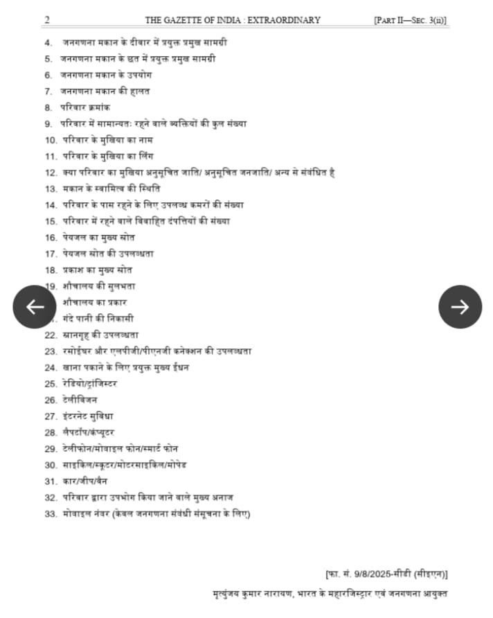 भारत सरकार ने जारी की जनगणना 2027 के प्रथम चरण के लिए सवालों की सूची।