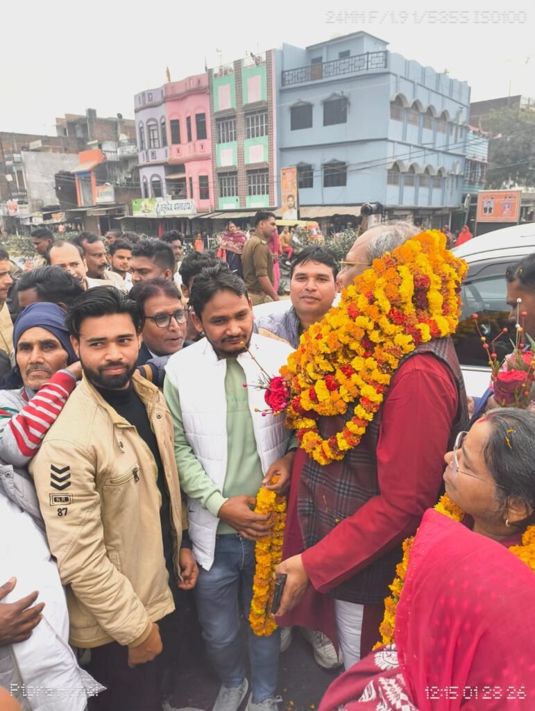 सुकरौली बाजार, कुशीनगर। नगर पंचायत सुकरौली में उस समय उत्साह और जोश का माहौल देखने को मिला, जब कुशीनगर की ओर जाते समय कैबिनेट मंत्री डॉ. संजय निषाद का काफिला बाजार में रुका। जैसे ही मंत्री के आगमन की सूचना मिली, पहले से मौजूद कार्यकर्ता सड़क किनारे एकत्र हो गए और फूल-मालाओं के साथ उनका जोरदार स्वागत किया।