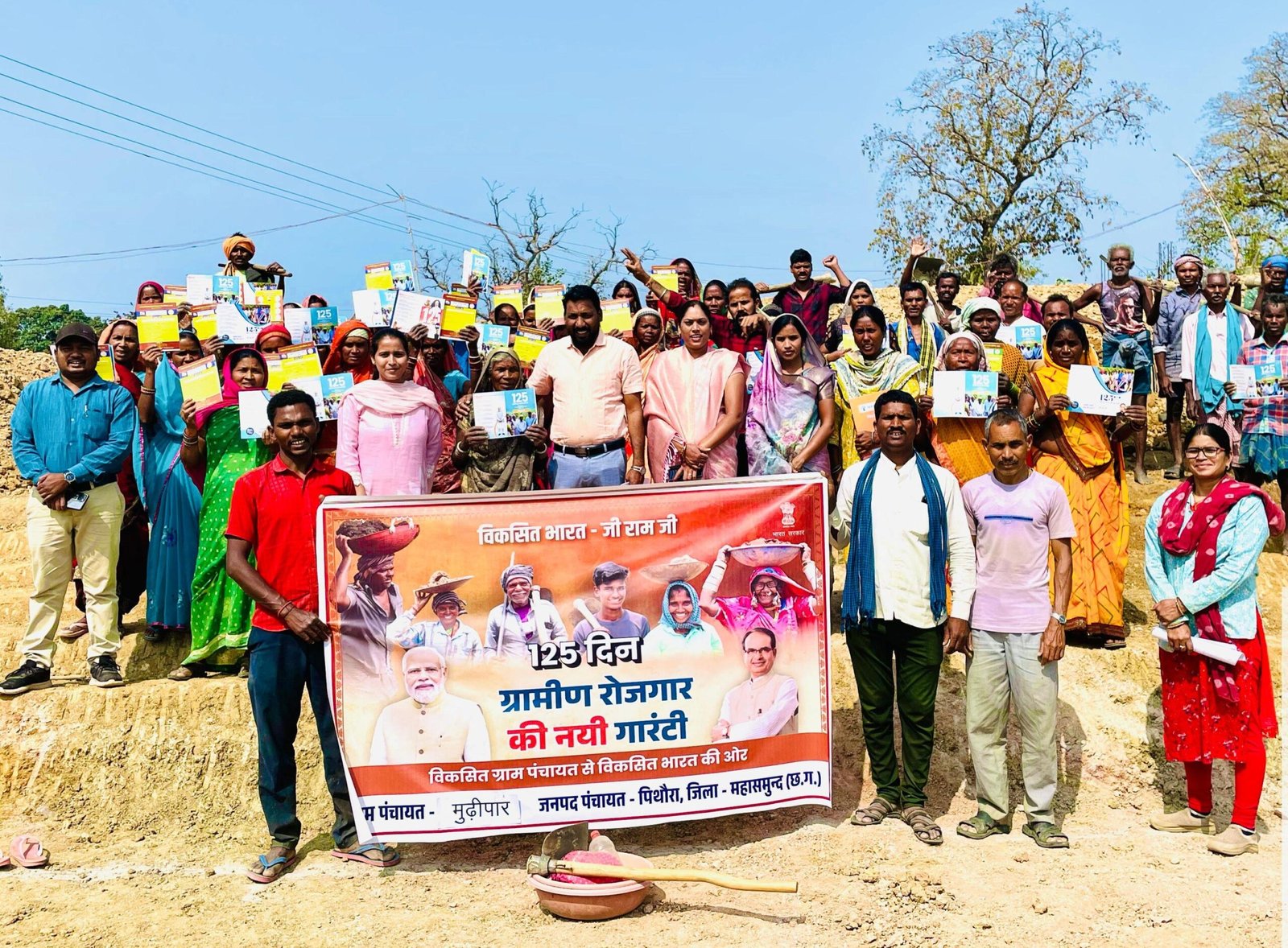 पिथौरा-ग्राम पंचायत मूढ़ीपार में चल रहे विकसित भारत जी राम जी ग्रामीण रोजगार कार्य स्थल पर पहुचकर जनपद अध्यक्ष ऊषा पुरर्षोत्तम घृतलहरे जनपद सदस्य पुरर्षोत्तम घृतलहरे जनपद पंचायत सीईओ योगेश्वरी वर्मन ने उपस्थित जनों को योजना के बारे में सविस्तार बताया।