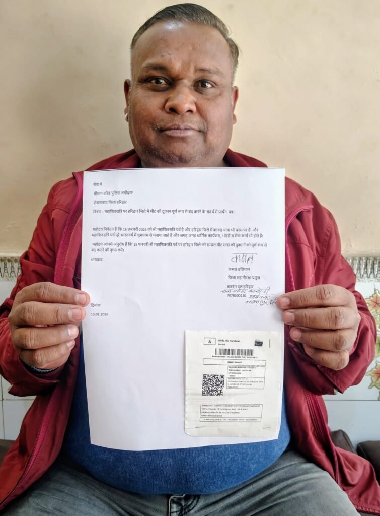 महाशिवरात्रि पर हरिद्वार जिले मे मीट की दुकान पूर्ण रूप से बंद करने के संदर्भ में दिया प्रार्थना पत्र!