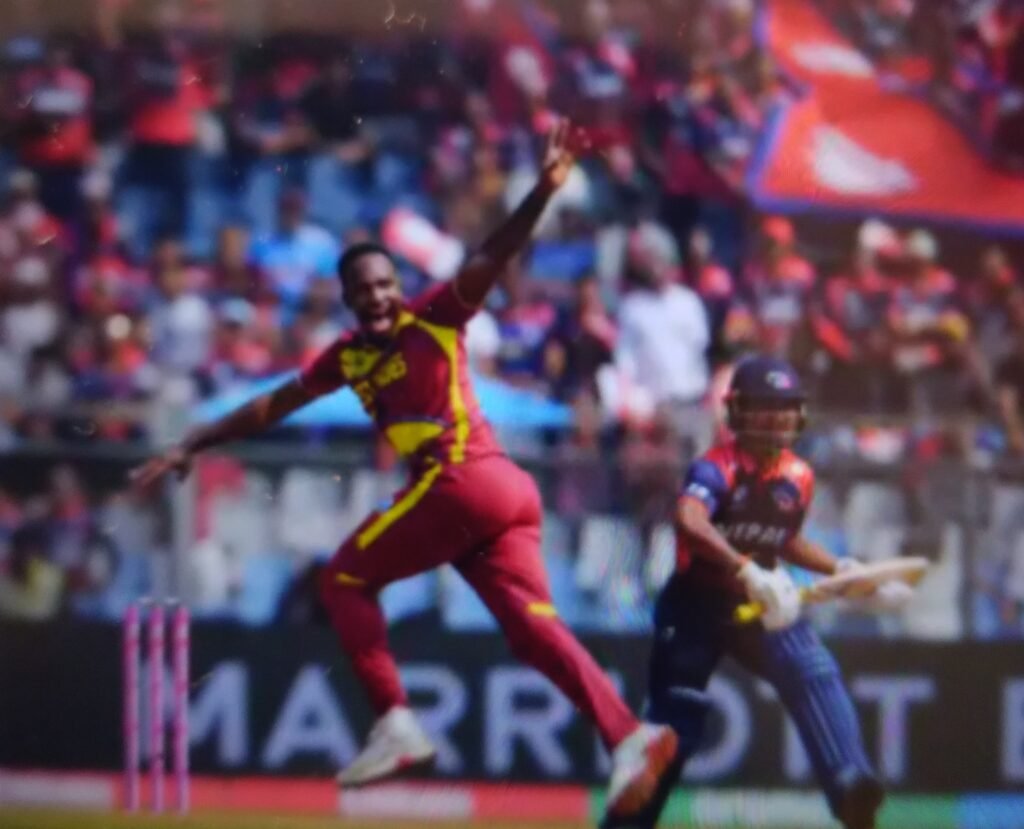 —-> टी20 विश्व कप 2026( पुरुष) का मैच आज रविवार 15 फरवरी को वेस्टइंडीज और नेपाल के बीच भारत मे मुंबई के वानखेडड़े स्टेडियम में खेला जा रहा है। वेस्टइंडीज की टीम ने टॉस जीता और पहले गेंदबाजी करने का फैसला किया। नेपाल की टीम ने मैच मे पहले बल्लेबाजी करते हुए 20 ओवर में 8 विकेट खोकर 133 रन बनाए और वेस्टइंडीज की टीम को जीतने के लिए 134रनों का लक्ष्य दिया। नेपाल की टीम से दीपेन्द्र सिंह ऐरी ने अपना अर्धशतक पूरा किया। दीपेन्द्र ने 47 गेदों मे 58रन बनाए। सोमपाल कामी ने 15गेदों में 26रन बनाकर नाबाद रहे। लोकेश बम 13, गुलशन झा और आसिफ शेख ने एक एक रन बनाए। वेस्टइंडीज की ओर से जेसन होल्डर ने चार विकेट झटक लिए। रोस्टन चेज मैथ्यू फोर्ड , अकील हुसैन , शमार जोसेफ ने भी एक एक मैच मे लिए। दीपेन्द्र सिंह ऐरी टी20 विश्व कप के इतिहास में नेपाल की टीम के लिए अर्धशतक पूरा करने वाले दूसरे खिलाड़ी बन गए हैं। इससे पूर्व वर्ष 2014 में चट्टो ग्राम में अफगानिस्तान टीम के खिलाफ सुभाष खाकुरेल ने 56रन बनाए थे। दोनों टीमों की प्लेइंग-11 इस तरह से है- नेपाल की टीम से- कुशल भुरतेल, आसिफ शेख, रोहित पौडेल- कप्तान, दीपेन्द्र सिंह ऐरी, आरिफ शेख, लोकेश बम, गुलशन झा, सोमपाल कामी, करण केसी, नंदन यादव, संदीप लामिछाने । वेस्टइंडीज की टीम से- कप्तान- ब्रैंडन किग, शिमरोन हेटमायर, रोस्टन चेज, रोवमन पॉवेल, शेरफन रदर फोर्ट, रोमारियो शेफर्ड, जेसन होल्डर, मैथ्यू फोर्ड, अकील हुसैन, गुडाकेसी मोती, शमार जोसेफ मैच खेल रहे हैं।