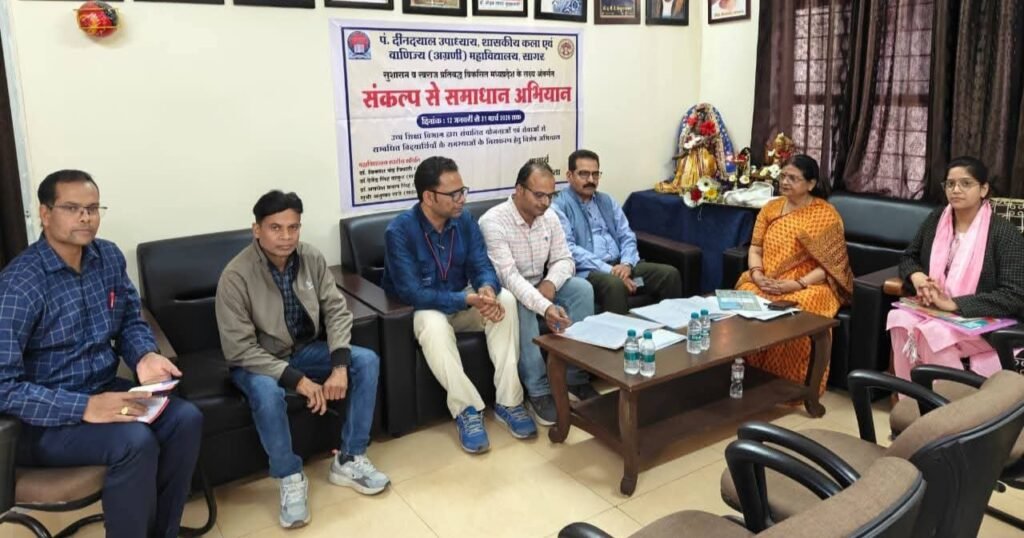 सागर/वंदे भारत लाइव टीवी न्यूज रिपोर्टर सुशील द्विवेदी 8225072664 * पंडित दीनदयाल उपाध्याय शासकीय कला एवं वाणिज्य महाविद्यालय में संकल्प से समाधान अभियान के अंतर्गत प्राचार्य डॉ. सरोज गुप्ता के मार्गदर्शन में बैठक आयोजित की गई । महाविद्यालय स्तर में, विद्यार्थियों की समस्याओं के त्वरित निराकरण हेतु चरणवार “संकल्प से समाधान अभियान” 12 जनवरी से प्रारंभ होकर 31 मार्च तक चलाया जा रहा है । इस बैठक में अभियान के प्रभारी जिला कलेक्टर संदीप जी आर द्वारा नामित जिला शिक्षा अधिकारी अरविन्द जैन उपस्थित रहे। महाविद्यालय प्राचार्य डॉ. गुप्ता ने उक्त अभियान के सफल क्रियान्वयन हेतु महाविद्यालय स्तरीय समिति डॉ विकाश चन्द्र त्रिपाठी संयोजक एवं समिति सदस्य डॉ देवेंद्र सिंह ठाकुर, डॉ अवधेश प्रताप सिंह, सुश्री अनुष्का राजे द्वारा महाविद्यालय में चलाए जा रहे विशेष समाधान शिविरों एवं अन्य कार्यक्रमों जैसे जन सुनवाई, हेल्पडेस्क, सी एम हेल्पलाइन प्रकरणों का त्वरित निराकरण, एवं विद्यार्थियों के स्वास्थ्य समस्याओं से संबंधित कार्यक्रमों की जानकारी प्रदान की गई। बैठक में श्री जैन द्वारा आगामी चरण हेतु महत्वपूर्ण सुझाव दिए गए। इस बैठक में अभय श्रीवास्तव योजना अधिकारी ने सी एम हेल्प लाइन समाधान हेतु विद्यार्थियों से सम्पर्क करने की बात कही। इस अवसर पर डॉ. विनय शर्मा, डॉ अमर कुमार जैन, डॉ राना कुंजर सिंह, डॉ. प्रकाश कुशवाहा, डॉ. रेणु सोलंकी संजीव खटीक ,चन्द्रप्रकाश पांडे आदि उपस्थित रहे।