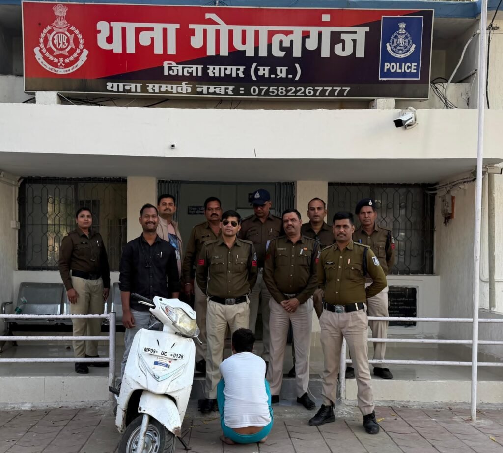 घटना दिनांक: 06.10.2025 से 07.10.2025 की दरम्यानी रात्रिचोरी गया माल: लगभग ₹800/- नगद एवं “हनुमानगढ़ी” लिखी पीतल की घंटी,फरियादी: बृजेश यादव पिता श्री जगदीश यादव, निवासी स्नेह नगर कालोनु,सिद्ध बाबा मंदिर, बालक कॉम्प्लेक्स: बालक कॉम्प्लेक्स, थाना गोपालगंज, जिला सागरघटना दिनांक: 05.12.2025 से 06.12.2025 की दरम्यानी दो दानपेटियों से लगभग ₹2500/- से ₹3000/- नगद राशि“सिद्ध बाबा मंदिर” अंकित पीतल का घंटा ,फरियादी: विवेक शर्मा पिता स्व. आर.डी. शर्मा, निवासी बालक कॉम्प्लेक्स,थाना गोपालगंज पुलिस की सतर्कता, तकनीकी विश्लेषण, निरंतर निगरानी एवं रणनीतिक कार्रवाई के परिणामस्वरूप मंदिरों में लगातार हो रही चोरियों का सफलतापूर्वक पर्दाफाश किया गया है।आरोपी से अन्य संभावित वारदातों के संबंध में विस्तृत पूछताछ जारी है। क्षेत्र में शांति एवं कानून-व्यवस्था बनाए रखने हेतु पुलिस द्वारा सतत निगरानी की जा रही है,स्पेशल टीम में ए एस आई राजेश चौबे ,प्रधान आरक्षक दीपक व्यास ,प्रधान आरक्षक अनिल प्रभाकर ,प्रधान आरक्षक अयूब खान ,प्रधान आरक्षक कैलाश सेन महिला प्रधान आरक्षक रेखा रजक ,आरक्षक नेकराम कौशल ,आरक्षक दशरथ मालवीय ,आरक्षक अंकित तिवारी ,आरक्षित थिरबम,आरक्षक चालक देवेंद्र पांडे शामिल रहे।