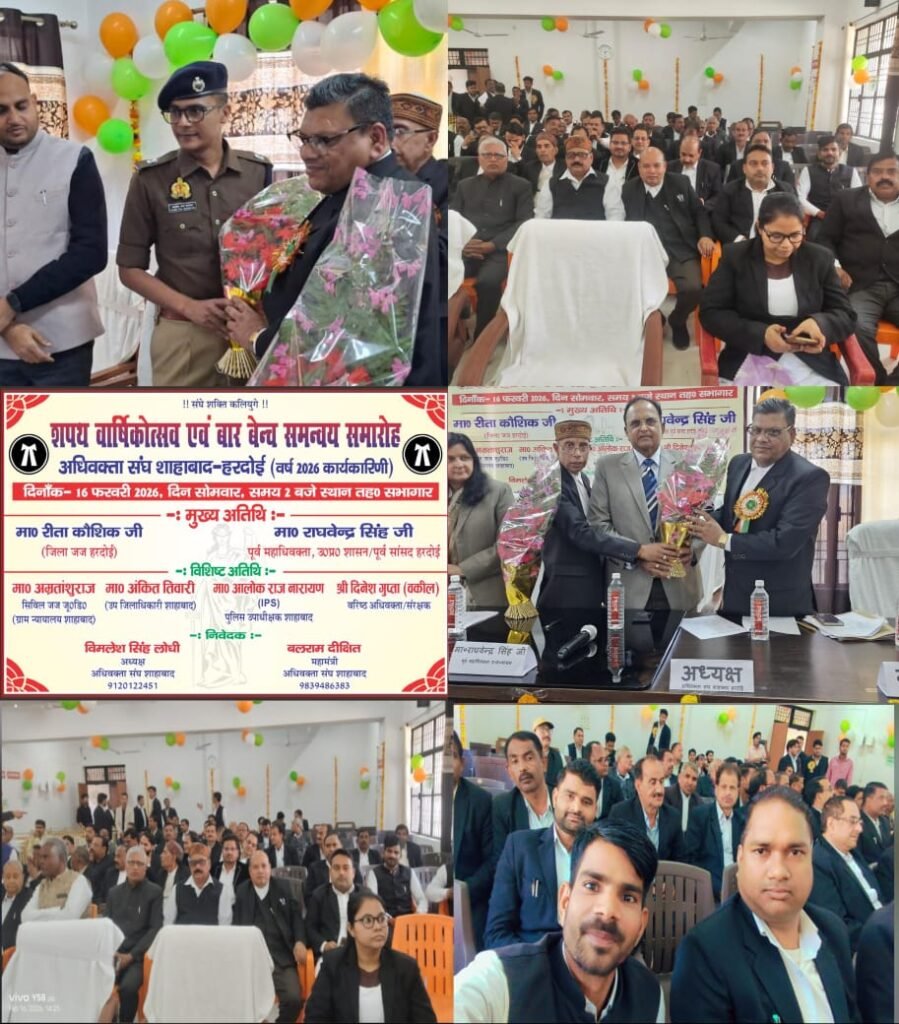 शाहाबाद हरदोई। सोमवार को तहसील सभागार में बार एसोसिएशन की नवनिर्वाचित कार्यकारिणी का शपथ ग्रहण एवं बार-बेंच समन्वय समारोह अत्यंत गारिमामयी वातावरण में संपन्न हुआ।