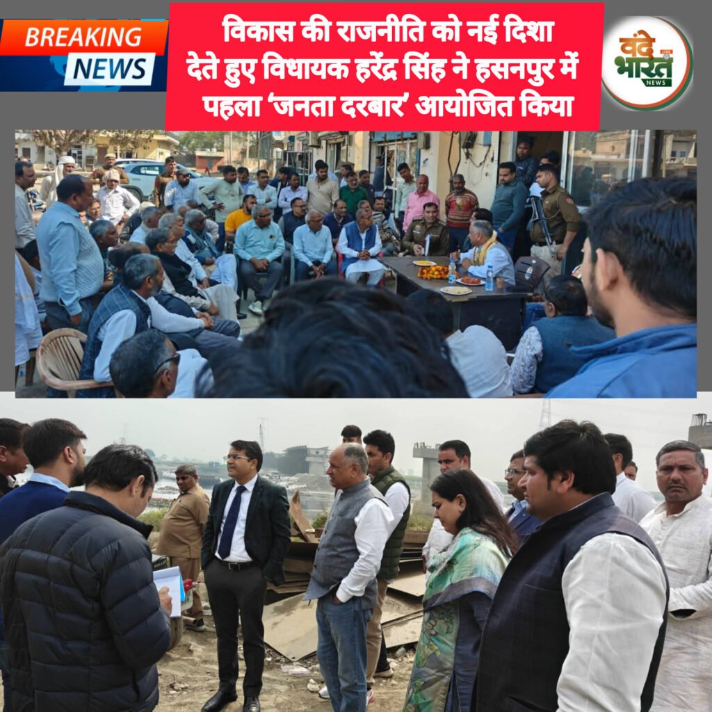 होडल विधानसभा क्षेत्र में विकास की राजनीति को नई दिशा देते हुए विधायक हरेंद्र सिंह ने हसनपुर में पहला ‘जनताजुड़ा सुना और सम्बंधित अधिकारी को दिया समय पर पूरा करने का निर्देश होडल विधानसभा क्षेत्र में विकास नया अध्याय, हसनपुर में लगा पहला ‘जनता दरबार’ डीसी हरीश कुमार वसिष्ठ एवं होडल एसडीएम बेलीना लोहान ने भी लोगो की समस्याओ को उन्होंने सीधे क्षेत्रवासियों से संवाद कर उनकी समस्याएं सुनीं और सुझाव प्राप्त किए।विधायक हरेंद्र सिंह ने कहा कि हसनपुर में चल रहे विकास कार्यों की वास्तविक स्थिति जानने के लिए जनता से बेहतर कोई माध्यम नहीं हो सकता। जनता दरबार में प्राप्त शिकायतों और सुझावों पर मौके पर ही संबंधित अधिकारियों को आवश्यक निर्देश दिए गए, ताकि समस्याओं का शीघ्र समाधान सुनिश्चित हो सके।उन्होंने स्पष्ट किया कि यह संवाद केवल एक दिन का कार्यक्रम नहीं, बल्कि क्षेत्रवासियों के साथ निरंतर संपर्क बनाए रखने की नई परंपरा है। आगे भी नियमित रूप से जनता दरबार आयोजित कर लोगों की समस्याओं का समाधान प्राथमिकता के आधार पर किया जाएगा।हसनपुर में पहली बार आयोजित ‘जनता दरबार’ में प्रशासनिक अधिकारियों ने सीधे आमजन की समस्याएं सुनीं। कार्यक्रम में पलवल के उपायुक्त हरीश कुमार वसिष्ठ तथा होडल की एसडीएम बेलीना लोहान ने विशेष रूप से शिरकत की।जनता दरबार में बड़ी संख्या में ग्रामीणों एवं क्षेत्रवासियों ने भाग लेकर अपनी समस्याएं रखीं। उपायुक्त हरीश कुमार वसिष्ठ ने संबंधित विभागों के अधिकारियों को निर्देश दिए कि प्राप्त शिकायतों का निस्तारण तय समय सीमा में सुनिश्चित किया जाए। वहीं एसडीएम बेलीना लोहान ने भी अधिकारियों को मौके पर ही आवश्यक दिशा-निर्देश देते हुए आमजन को आश्वस्त किया कि उनकी समस्याओं का प्राथमिकता के आधार पर समाधान किया जाएगा।इस दौरान बिजली, पानी, सड़क, राजस्व एवं सामाजिकवन्दे भारत न्यूज़ /प्रवीण कुमार पलवल/होडल ( हरियाणा) 18फरबरी2026 आज हसनपुर में पहली बार आयोजित ‘जनता दरबार’ में प्रशासनिक अधिकारियों ने सीधे आमजन की समस्याएं सुनीं। कार्यक्रम में पलवल के उपायुक्त हरीश कुमार वसिष्ठ तथा होडल की एसडीएम बेलीना लोहान ने विशेष रूप से शिरकत की।जनता दरबार में बड़ी संख्या में ग्रामीणों एवं क्षेत्रवासियों ने भाग लेकर अपनी समस्याएं रखीं। उपायुक्त हरीश कुमार वसिष्ठ ने संबंधित विभागों के अधिकारियों को निर्देश दिए कि प्राप्त शिकायतों का निस्तारण तय समय सीमा में सुनिश्चित किया जाए। वहीं एसडीएम बेलीना लोहान ने भी अधिकारियों को मौके पर ही आवश्यक दिशा-निर्देश देते हुए आमजन को आश्वस्त किया कि उनकी समस्याओं का प्राथमिकता के आधार पर समाधान किया जाएगा।