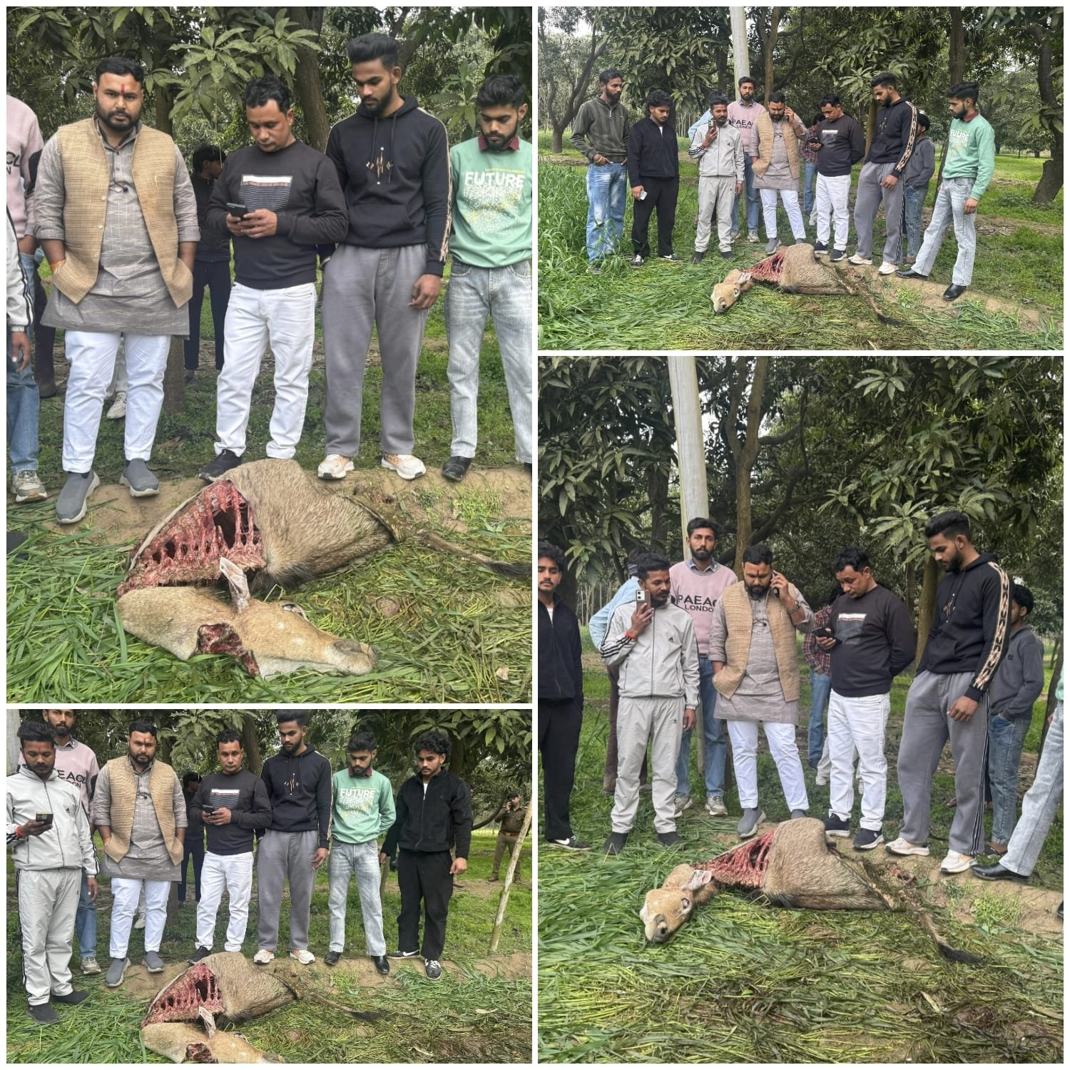 जनपद सहारनपुर के थाना बेहट क्षेत्र के नादराणा गांव में वन्य जीव के शिकार की एक बेहद दर्दनाक और चिंताजनक घटना सामने आई है, जिसने पूरे इलाके को झकझोर कर रख दिया है। स्थानीय ग्रामीणों की सूचना पर हिंदू संगठन के कार्यकर्ता मौके पर पहुंचे, जहां कथित रूप से एक वन्य जीव के अवशेष पाए गए। घटनास्थल की स्थिति देखकर आशंका जताई जा रही है कि नीलगाय को पहले गोली मारकर घायल किया गया और बाद में उसके शरीर से मांस निकाला गया। मौके पर पड़े अवशेष इस पूरी घटना की गंभीरता की गवाही दे रहे हैं।