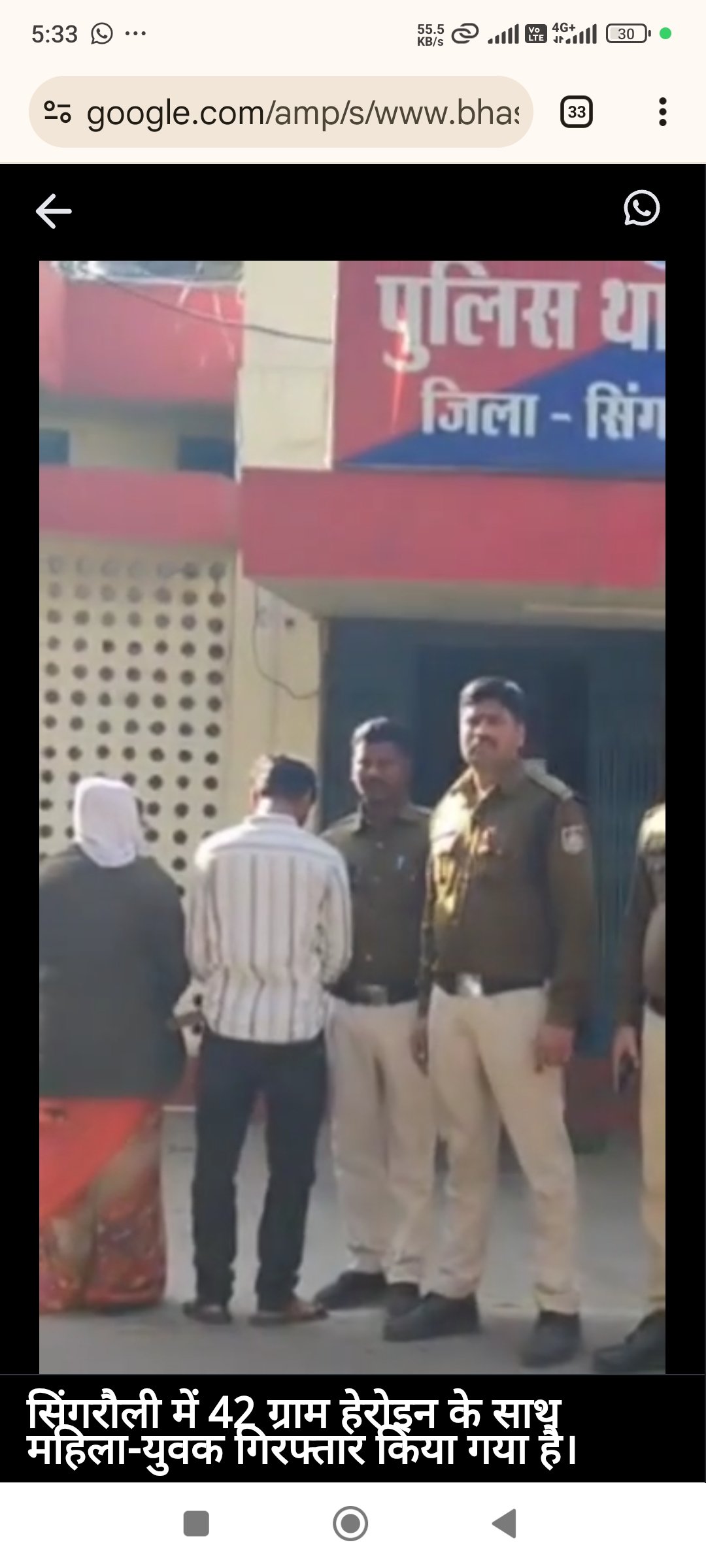 पुलिस महानिरीक्षक रीवा संभाग *गौरव राजपूत* एवं अतिरिक्त पुलिस महानिरीक्षक *हेमंत चौहान* के दिशानिर्देश पर सिंगरौली पुलिस अधीक्षक *मनीष खत्री* द्वारा अवैध नशे के कारोबार के विरुद्ध चलाए जा रहे *ऑपरेशन प्रहार 2.0* के तहत मोरवा पुलिस ने अवैध मादक पदार्थ के विरुद्ध एक बड़ी कार्यवाही की है। बीती शाम पुलिस ने मादक पदार्थ की तस्करी के खिलाफ कार्रवाई करते हुए *42 ग्राम हेरोइन* के साथ एक महिला और एक युवक को गिरफ्तार किया है। पुलिस ने आरोपियों के कब्जे से एक स्कूटी भी जब्त की है। जब्त सामग्री की कुल कीमत करीब 5 लाख 20 हजार रुपये बताई गई है।
