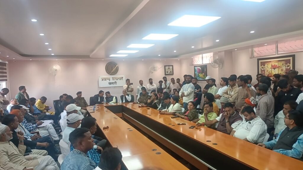 प्रशासन की पहल पर खलारी प्रखंड सभागार में शांति समिति की बैठक आयोजित की गई। बैठक की अध्यक्षता कांके विधायक सुरेश कुमार बैठा ने की। बैठक में रांची जिला के पूर्व जिला संगठन सचिव जुल्फेकार अंसारी, जेएमएम जिला संयोजक अध्यक्ष मुस्ताक आलम, जेएमएम पूर्व युवा जिला अध्यक्ष धर्मेंद्र सिंह, जेएमएम मांडर प्रखंड अध्यक्ष रोशन तिग्गा सहित विभिन्न दलों के प्रतिनिधि उपस्थित रहे।
