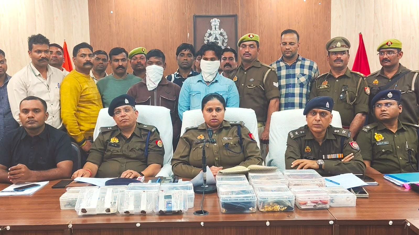 एसओजी सर्विलांस, थाना अहरौरा व थाना अदलहाट की संयुक्त टीम द्वारा जनपद बिलासपुर छत्तीसगढ़ के लूट की घटना से सम्बन्धित 02 शातिर अन्तर्राज्यीय लूटेरे पुलिस मुठभेड़ में तथा 02 अन्य (कुल 04 अभि.) गिरफ्तार, अवैध 01 पिस्टल, 02 तमंचा भय कारतूस व लूट से सम्बन्धित 3.768 किलो ग्राम आभूषण व नगद 1,46,100 रूपये बरामद