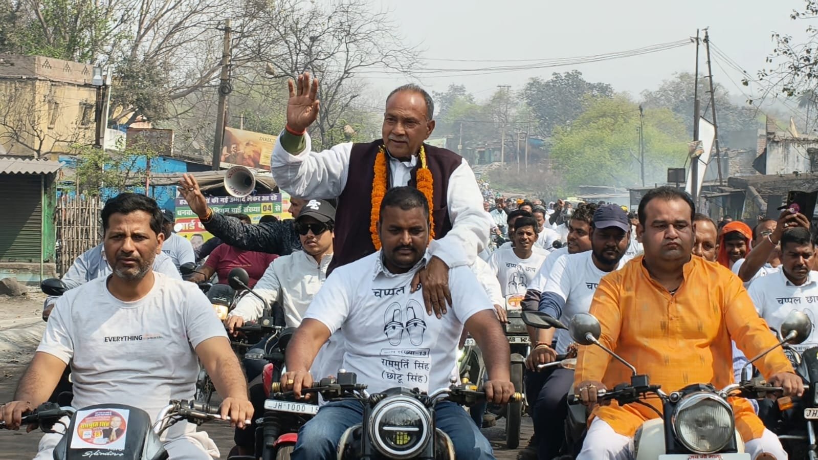 वार्ड नंबर 4 के पार्षद प्रत्याशी छोटू सिंह के साथ समर्थकों ने निकाला विशाल मोटरसाइकिल जुलूस