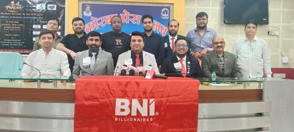 कोरबा। शहर के उद्यमियों और व्यापार जगत के लिए एक बड़ी सौगात लेकर आ रहा है BNI Billionaires। अपने प्रथम स्थापना वर्ष के उपलक्ष्य में चैप्टर द्वारा 22 फरवरी 2026 को Jashn Resort में दोपहर 3 बजे से रात 11 बजे तक भव्य कॉर्पोरेट बिज़नेस कॉन्क्लेव “प्रगति 2026” का आयोजन किया जाएगा।