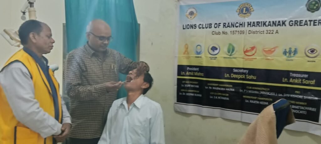 रांची:लायंस क्लब का रांची हरि कनक ग्रेटर एवं छात्र क्लब चिकित्सक मंच के संयुक्त तत्वावधान में रातु कांठीटांड़ चौक साहु कॉम्प्लेक्स स्थित आरती डेंटल क्लिनिक मे निः शुल्क दंत चिकित्सा जांच शिविर का आयोजन प्रथम उपाध्यक्ष लायन विजय कुमार पाठक के अध्यक्षता मे आयोजित किया गया।