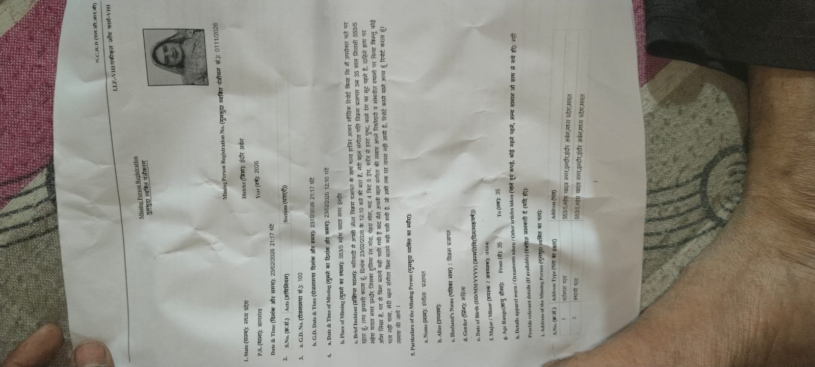 संगीता प्रजापति बाणगंगा थाना इन्दौर निवासी 23/02/2026 को दोपहर 12:10 बजे से लापता है जिनके बच्चे परेशान हो रहे