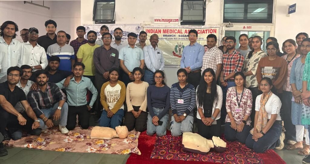 मुख्य प्रशिक्षक डॉ. अजय सिंह ने सरल भाषा और व्यावहारिक प्रदर्शनों के जरिए समझाया कि हृदय गति रुकने या सांस बंद होने की स्थिति में तुरंत सीपीआर शुरू करने से मस्तिष्क तक ऑक्सीजन पहुंचती रहती है। इससे अस्पताल पहुंचने तक का मूल्यवान समय बचाया जा सकता है। आईएमए सागर के अध्यक्ष डॉ. तल्हा साद ने वैज्ञानिक तथ्यों के आधार पर बताया कि सही समय पर दिया गया सीपीआर व्यक्ति के जीवित रहने की संभावना को दोगुना या तिगुना तक बढ़ा सकता है, क्योंकि यह रक्त संचार को बनाए रखता है। उन्होंने आमजन से अपील की कि किसी भी आपात स्थिति में बिना डर या संकोच के सीपीआर शुरू करें, क्योंकि हर सेकंड जीवन और मृत्यु के बीच फर्क डाल सकता है।