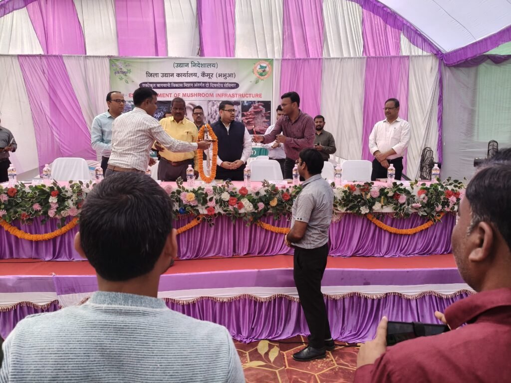 कैमूर जिले में मशरूम उत्पादन को स्वरोजगार का सशक्त माध्यम बनाने के उद्देश्य से “मशरूम इन्फ्रास्ट्रक्चर की स्थापना” विषय पर एक महत्वपूर्ण सेमिनार का आयोजन किया गया। कार्यक्रम का उद्घाटन जिला पदाधिकारी महोदय कैमूर द्वारा दीप प्रज्वलन कर किया गया।