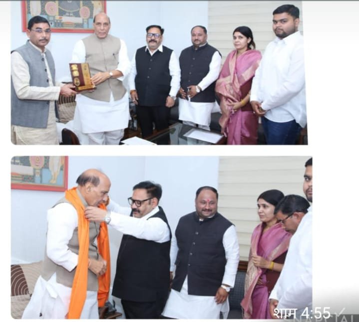राष्ट्रीय पत्रकार सुरक्षा परिषद के राष्ट्रीय अध्यक्ष देवेंद्र कुमार मिश्रा एवं प्रदेश संरक्षक उत्तर प्रदेश प्रमोद शर्मा ने रक्षा मंत्री से दिल्ली में मुलाकात करके स्मृति चिन्ह किया भेंट