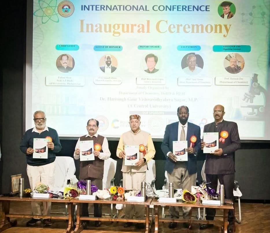 सागर,वंदे भारत लाइव टीवी न्यूज रिपोर्टर सुशील द्विवेदी 8225072664 * डॉ. हरीसिंह गौर विश्वविद्यालय, सागर के अभिमंच सभागार में तीन दिवसीय अंतरराष्ट्रीय सम्मेलन “रासायनिक, औषधीय एवं पर्यावरणीय विज्ञानों में उभरते अवसर तथा वैश्विक चुनौतियाँ : सतत भविष्य की ओर” का शुभारंभ हुआ। यह आयोजन प्रत्यक्ष एवं आभासी दोनों माध्यमों से किया जा रहा है। कार्यक्रम का प्रारंभ प्रो. विजय वर्मा के स्वागत उद्बोधन से हुआ। उन्होंने सतत विकास के लिए बहुविषयक अनुसंधान एवं नवाचार की आवश्यकता पर बल दिया। सम्मेलन संयोजक प्रो. रत्नेश दास ने भूमिका प्रस्तुत करते हुए प्रारंभिक टिप्पणी में सम्मेलन के उद्देश्यों एवं महत्त्व को विस्तार से बताया । मुख्य अतिथि प्रो. ए. पी. दास अध्यक्ष राष्ट्रीय वाहक जनित रोग अकादमी तथा पूर्व कुलपति तमिलनाडु केंद्रीय विश्वविद्यालय ने अपने संबोधन में जनस्वास्थ्य एवं पर्यावरण से जुड़ी चुनौतियों के समाधान हेतु वैज्ञानिक अनुसंधान की महत्ता को रेखांकित किया। उन्होंने युवा वैज्ञानिकों को समाजोपयोगी अनुसंधान के लिए प्रेरित किया।विशिष्ट अतिथि प्रो. सैमुअल एडेलोजू, मोनाश विश्वविद्यालय, ऑस्ट्रेलिया से, ने वैश्विक स्तर पर हो रहे शोध कार्यों तथा अंतरराष्ट्रीय सहयोग की संभावनाओं पर विचार व्यक्त किए। अध्यक्षीय उद्बोधन में कुलपति प्रो. यशवंत सिंह ठाकुर ने विश्वविद्यालय की अनुसंधान परंपरा एवं उत्कृष्टता के प्रति प्रतिबद्धता को रेखांकित करते हुए कहा कि विश्वविद्यालय में उच्च कोटि के शोध लगातार हो रहे हैं. यहाँ हुए वैज्ञानिक शोधों को दुनिया भर में महत्त्व मिला है और विश्व के सर्वश्रेष्ठ वैज्ञानिकों में विश्वविद्यालय के शिक्षकों और शोधार्थियों को स्थान मिला है. धन्यवाद ज्ञापन डॉ. कल्पतरु दास द्वारा प्रस्तुत किया गया। प्रथम शैक्षणिक सत्र में प्रो. भुवनेश गुप्ता (ऊर्जा एवं पेट्रोलियम अध्ययन विश्वविद्यालय, देहरादून) ने मुख्य व्याख्यान दिया। इसके पश्चात प्रो. सैमुअल एडेलोजू तथा प्रो. एन. बी. पटेल (पूर्व विभागाध्यक्ष एवं अधिष्ठाता, गुजरात विश्वविद्यालय) ने विशिष्ट व्याख्यान प्रस्तुत किए। प्रो. दीपशिखा राठौर ने उद्योग और शिक्षाजगत के समन्वय पर अपने विचार रखे। आयोजित द्वितीय शैक्षणिक सत्र में प्रो. आर. एन. पटेल (अवधेश प्रताप सिंह विश्वविद्यालय, रीवा), प्रो. श्वेता व्यास (कोटा विश्वविद्यालय), डॉ. अंजलि गुलरिया (राजस्थान विश्वविद्यालय) तथा डॉ. चेतना वर्मा (भारतीय प्रौद्योगिकी संस्थान, दिल्ली) ने अपने शोध कार्य प्रस्तुत किए। देश-विदेश से आए प्रतिभागियों ने सक्रिय रूप से चर्चा में भाग लिया।