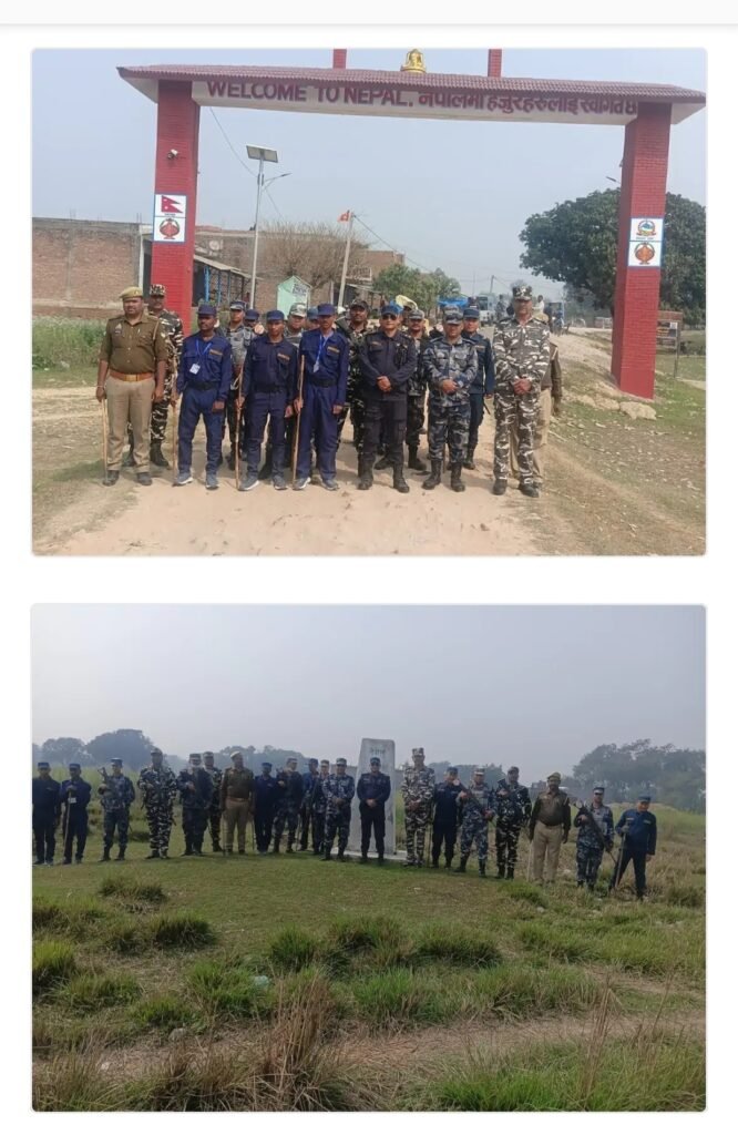 सिद्धार्थनगरः होली और रमजान के त्योहारों से पहले भारत-नेपाल सीमा पर सुरक्षा व्यवस्था कड़ी कर दी गई है। इसी क्रम में शुक्रवार को थाना मोहाना पुलिस ने सशस्त्र सीमा बल (एसएसबी), नेपाल पुलिस और एपीएफ नेपाल के साथ मिलकर भगवानपुर सीमा क्षेत्र में संयुक्त पैदल गश्त और चेकिंग अभियान चलाया। इस दौरान सीमा पर आने-जाने वाले लोगों और गतिविधियों पर विशेष निगरानी रखी गई।
