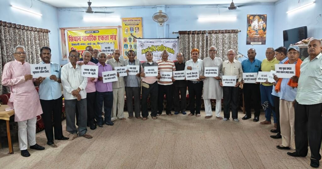 भिलाई (वन्दे भारत)। भिलाई वरिष्ठ नागरिक महासंघ द्वारा समाज को नशे की बढ़ती प्रवृत्ति से बचाने एवं स्वस्थ, जागरूक और सशक्त समाज के निर्माण के उद्देश्य से “नशा मुक्ति अभियान” का शुभारंभ किया गया। सियान सदन वैशाली नगर भिलाई में शनिवार को आयोजित संगोष्ठी में महासंघ के पदाधिकारियों एवं सदस्यों ने एकजुट होकर नशा के खिलाफ जनजागरूकता फैलाने का निर्णय लिया। होली आदि त्योहारों पर नशाखोरी की बढ़ती प्रवृत्ति पर गहरी चिंता व्यक्त की गई। सभी वरिष्ठ जनों ने इस होली में हर तरह की नशा, अश्लीलता एवं सामाजिक बुराइयों को जलाने का संकल्प लिया।