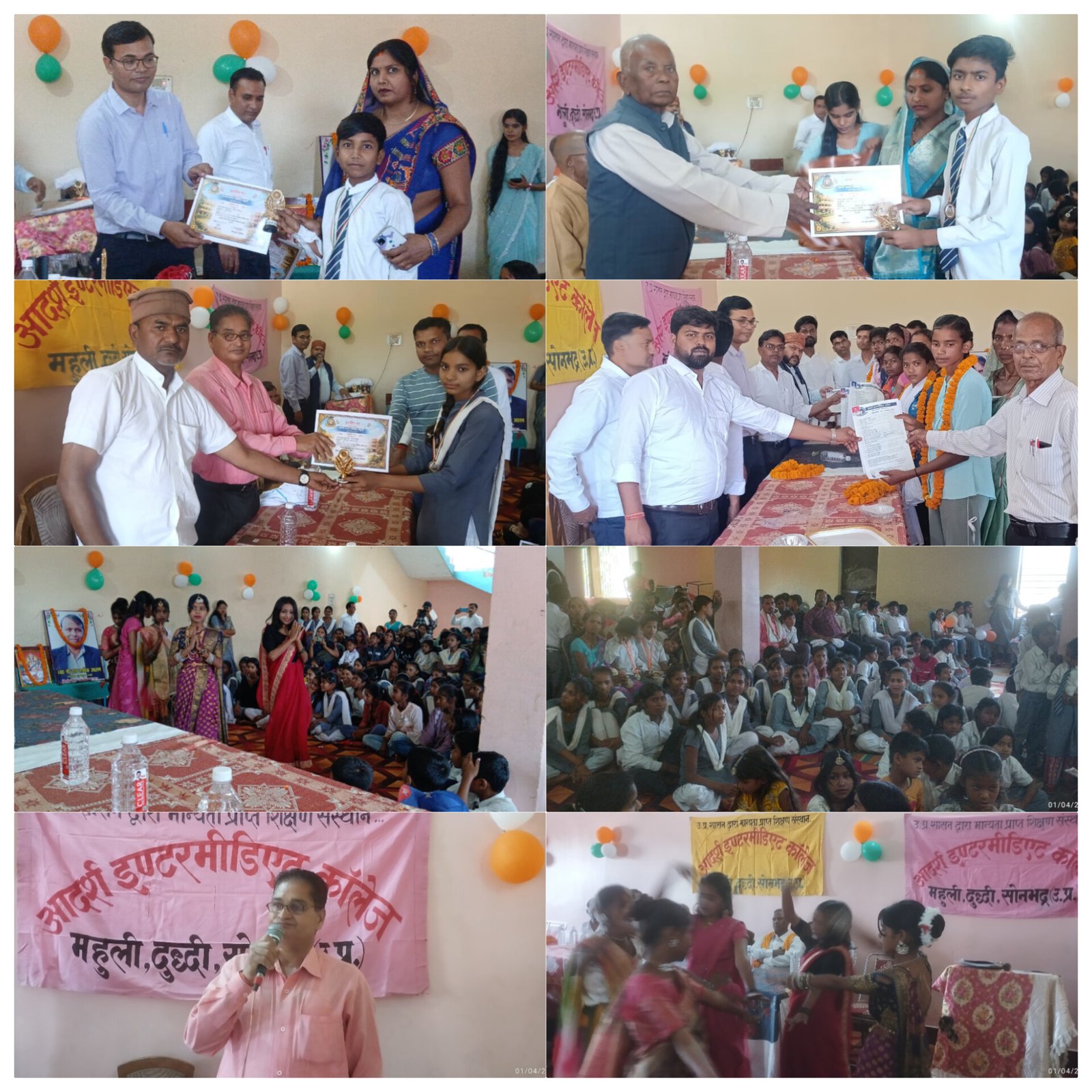 विकास खंड दुद्धी के महुली स्थित आदर्श इंटरमीडिएट कॉलेज में बुधवार को वार्षिक उत्सव, प्रतिभा सम्मान समारोह एवं शिक्षक-अभिभावक संगोष्ठी का भव्य आयोजन किया गया। कार्यक्रम का शुभारंभ मुख्य अतिथि भुल्लुराम कन्नौजिया (सेवानिवृत्त शिक्षक), विशिष्ट अतिथि अरुण कुमार मिश्रा (सेवानिवृत्त प्रधानाचार्य, राजकीय हाई स्कूल दीघुल) व कलामुद्दीन सिद्दीकी द्वारा मां सरस्वती एवं संस्थापक स्व. डॉ. शफीक आलम के चित्र पर श्रद्धा सुमन अर्पित कर एवं दीप प्रज्वलित कर किया गया।