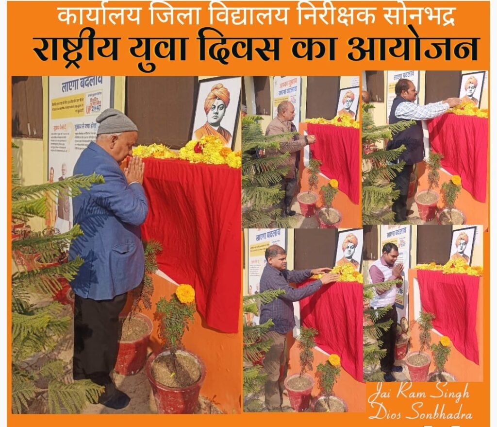 सोनभद्र(राकेश कुमार कन्नौजिया)_आज दिनांक 12 जनवरी 2025 को कार्यालय जिला विद्यालय निरीक्षक, सोनभद्र में महान आध्यात्मिक संत, युगद्रष्टा विचारक एवं असंख्य युवाओं के प्रेरणास्रोत स्वामी विवेकानन्द जी की जयंती को राष्ट्रीय युवा दिवस के रूप में पूर्ण श्रद्धा, गरिमा एवं भावपूर्ण वातावरण में मनाया गया।